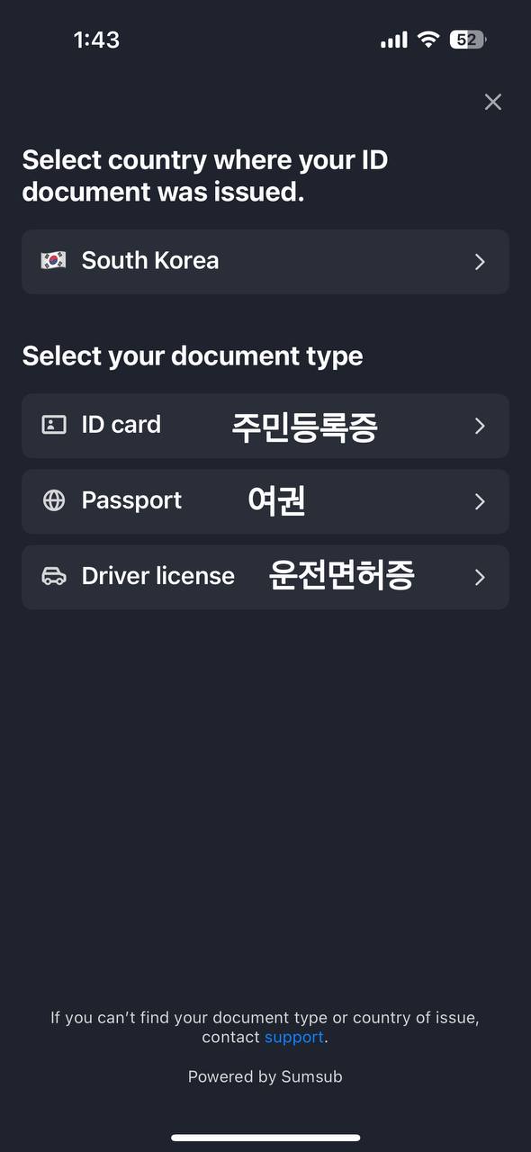 이 중에 한 개를 골라서 인증하시면 KYC 인증 또한 마무리됩니다